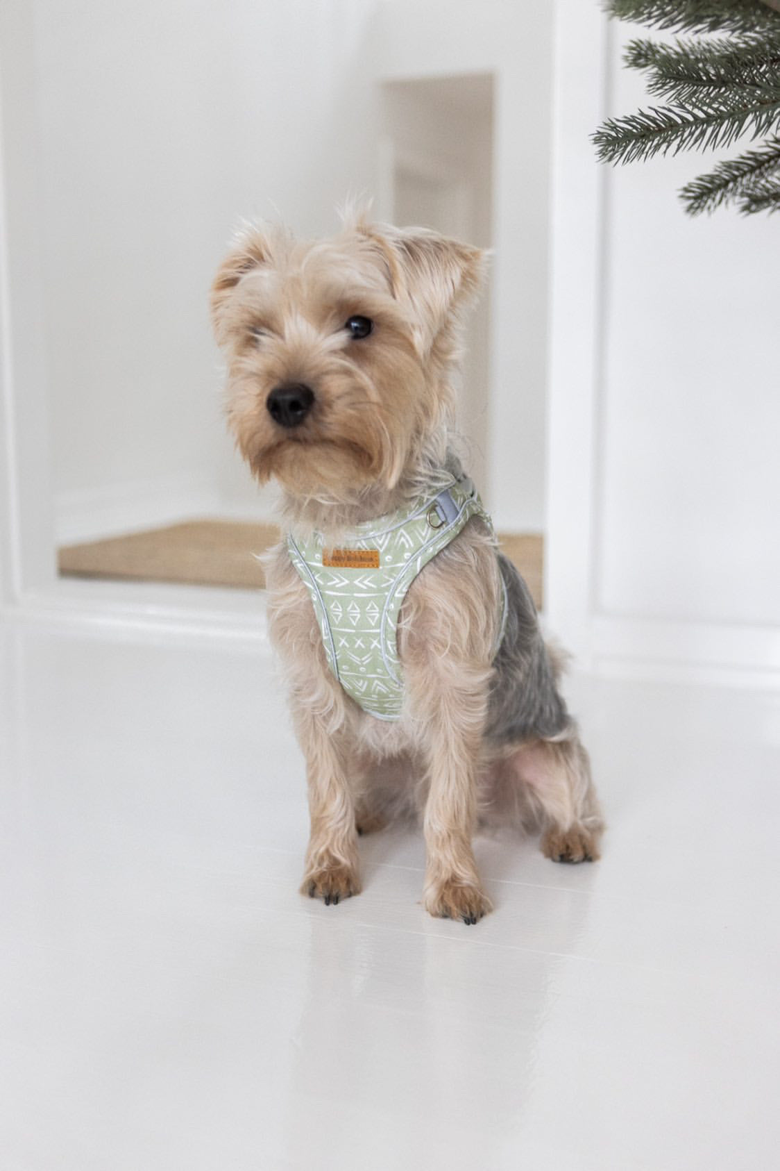 Our Step-in harness is easy to get on and off as it does not have to be over your dog's head. It is made of 100% cotton which makes it breathable. The harness is designed with a focus on comfort for the dog and does not restrict the dog's range of movement. The harness has a reflective edge, as well as reflectors on the shoulders, which ensures that the dog is visible on the evening walk. The harness is adjustable - can be tightened and loosened to achieve the best fit for your dog.