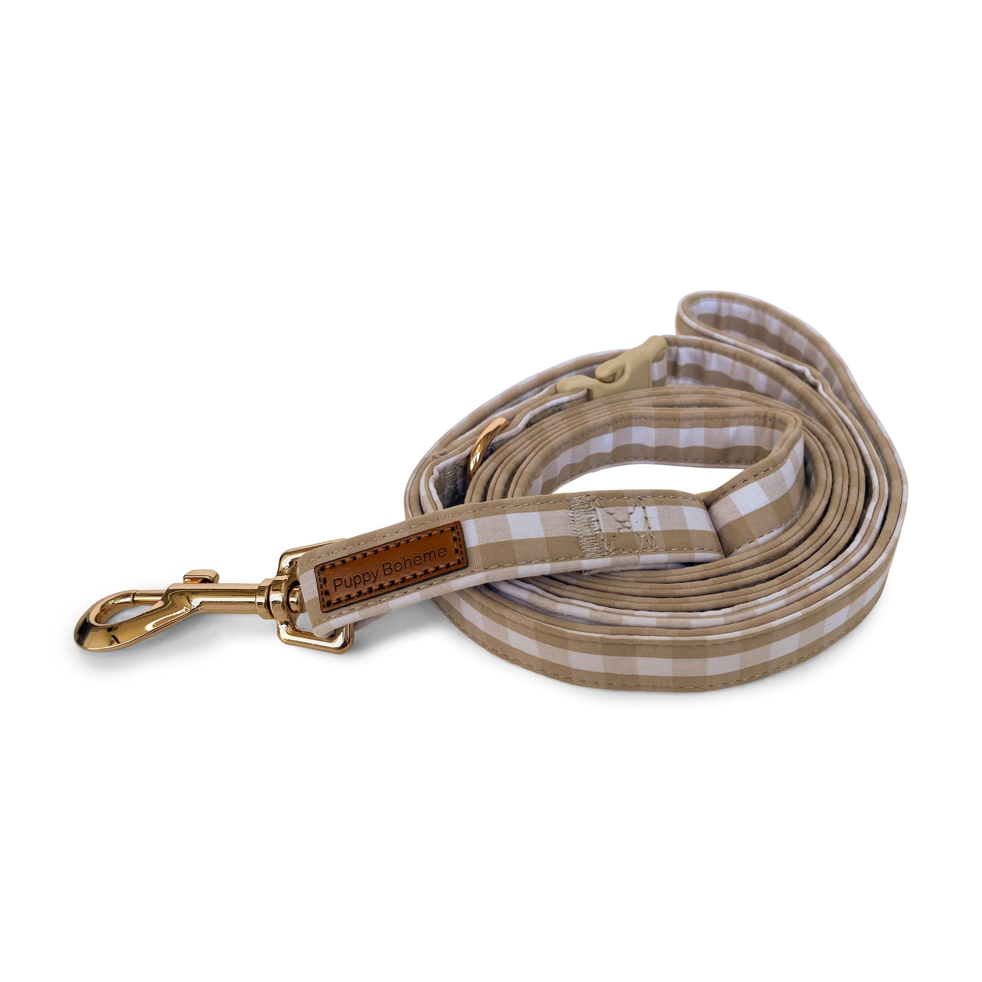 Linen er lavet i 100% bomuld og med guld detaljer. Den er 200cm og kan justeres, hvis man ønsker en kortere længde. Perfekt line til at lære din hund at gå pænt i snor.