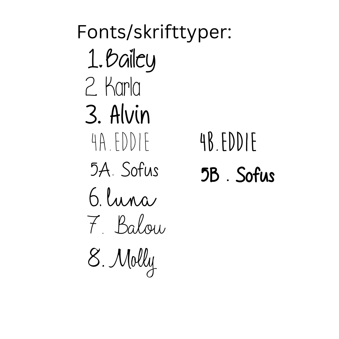 En oversigt over de forskellige skrifttyper ses på billede nr. 4.