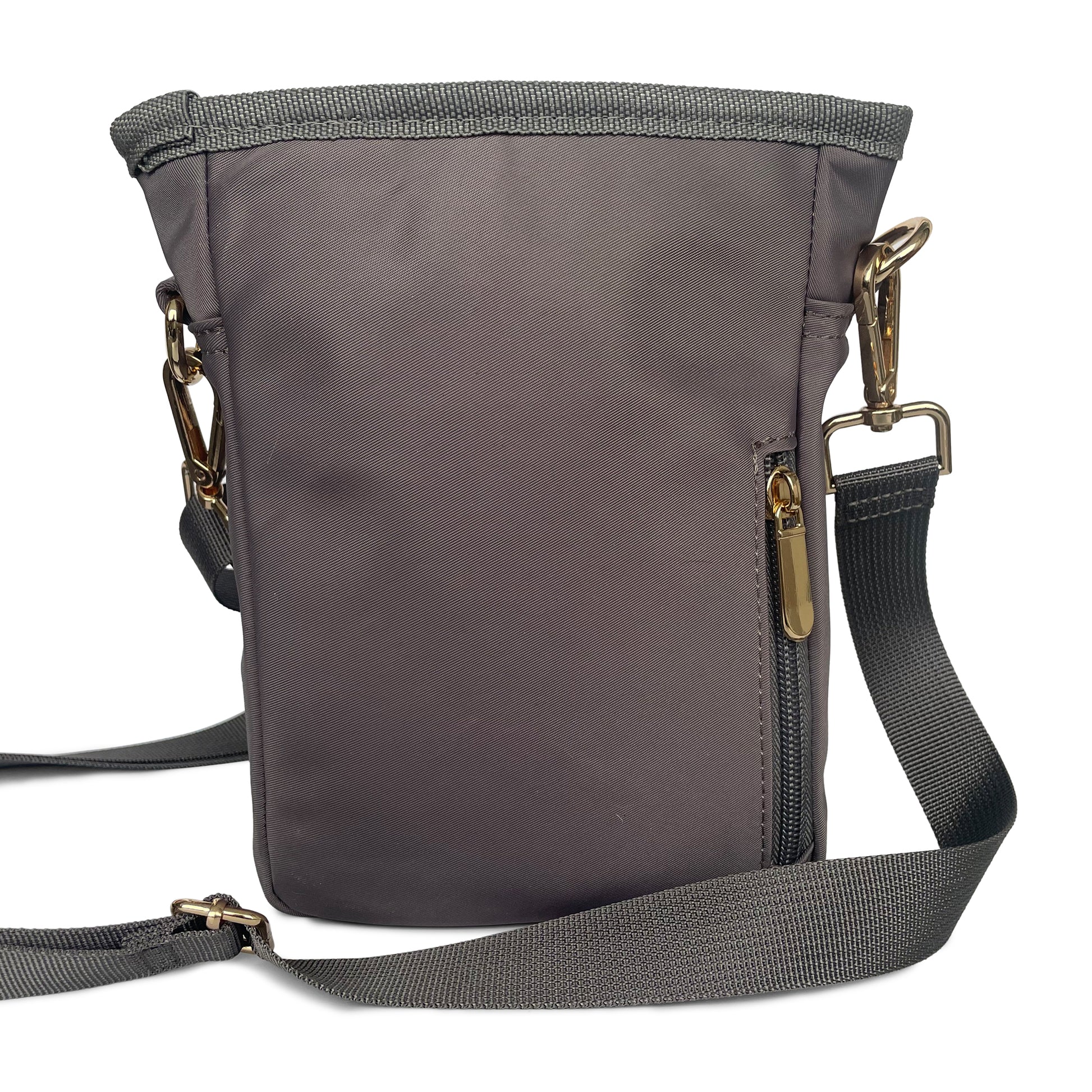 Den smarte taske er perfekt til at have alle de nødvendige ting med på de daglige gåture eller til hundetræning. Den er lavet i lækkert nylon materiale, som er vandafvisende og har en justerbar strop. På forsiden er der er rum til hundeposer med et 'hul' til at man hurtigt og nemt kan trække hundeposer frem, når de skal bruges. Derudover er der plads til nøgler, telefon og andet man ønsker at medbringe på turen eller til hundetræning. Farven på denne er gråbrun.