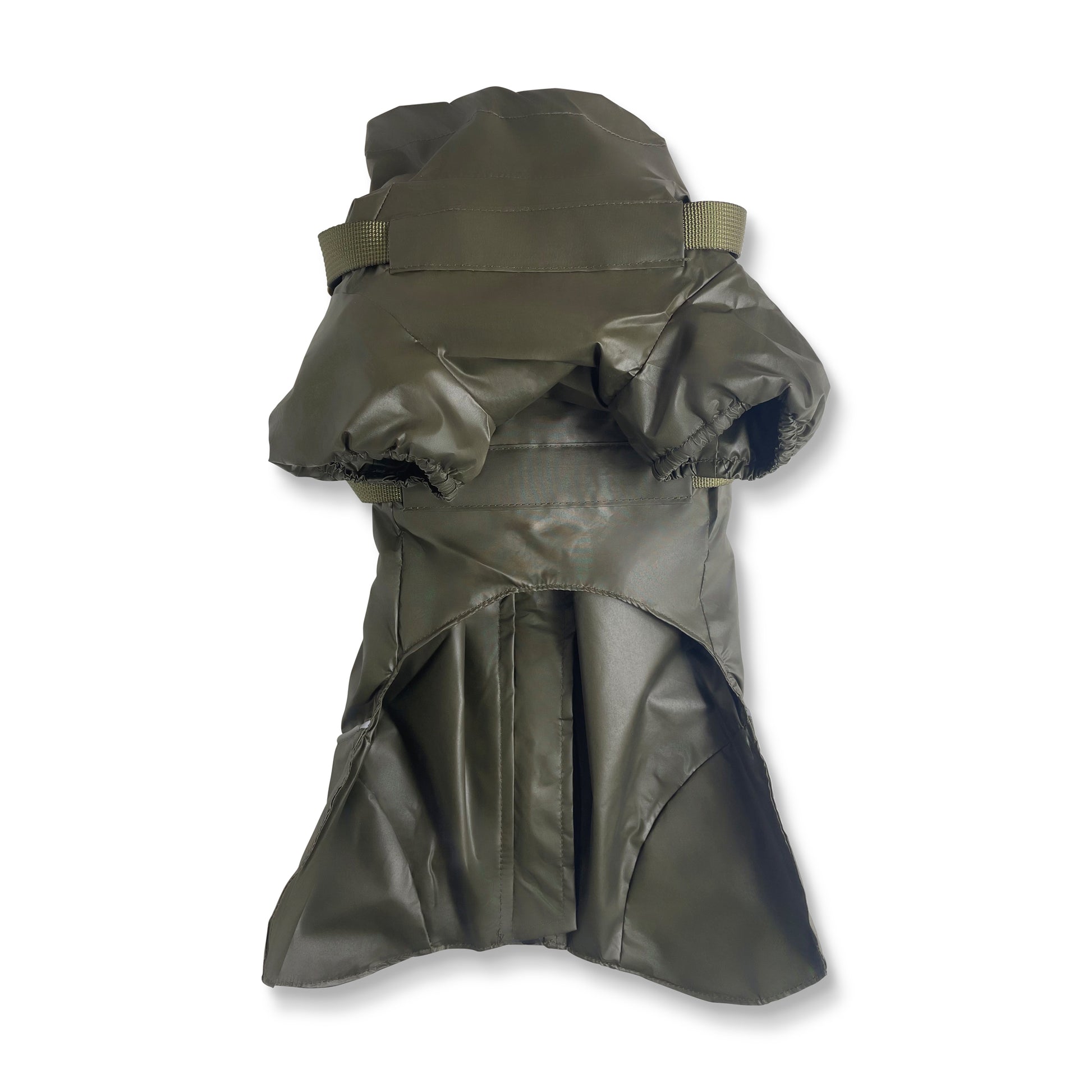 Super lækker og praktisk regnjakke. Jakken er lavet som en ‘step-in’ model, så den lynes på ryggen og har indbygget sele. Man slipper på den måde for at skulle give hunden flere lag på. Det bliver ikke nemmere, når vuffen skal på tur i regnvejr! Selen er justerbar, så man opnår den perfekte pasform. Jakken er lavet af et vandtæt materiale og med glat for for at undgå filt i pelsen. Perfekt til forår, sommer og efterårsmånederne, hvor man skal bruge en regnjakke uden varmefor i.