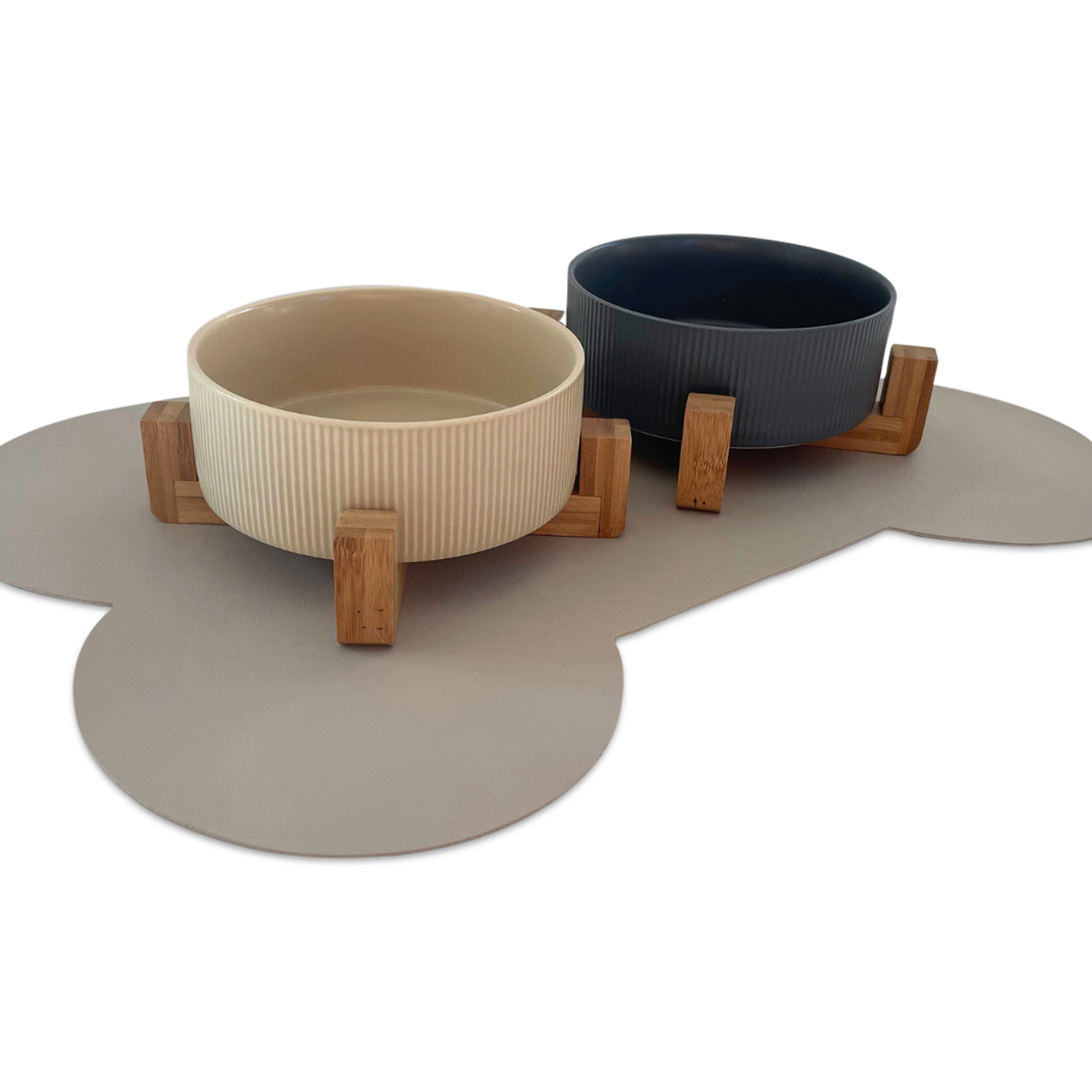 Dette stilrene skåleunderlag til hundens mad- og vandskål er designet til at beskytte gulvet mod spild af vanddråber og samtidigt indramme hundens spiseplads.